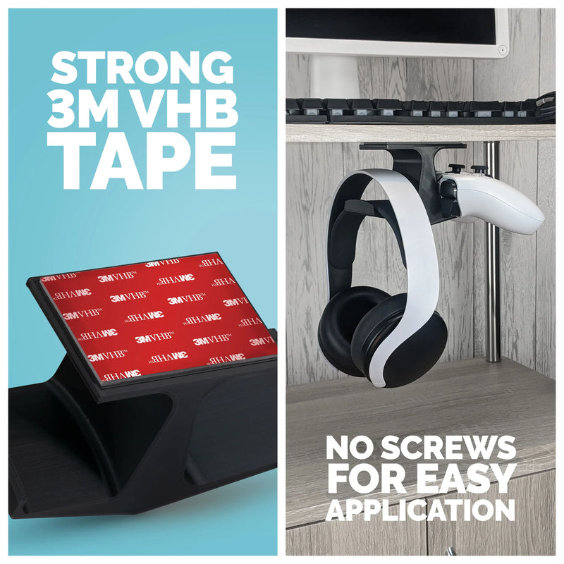 Our Universal Game Controller & Headphone hanger mount comes with 3M VHBTM tape pre-fitted and can be installed almost anywhere - Under desks, shelves, cabinets, glass surfaces and many more. Max Weight Limit: 1.5kg / 3.3lbs.